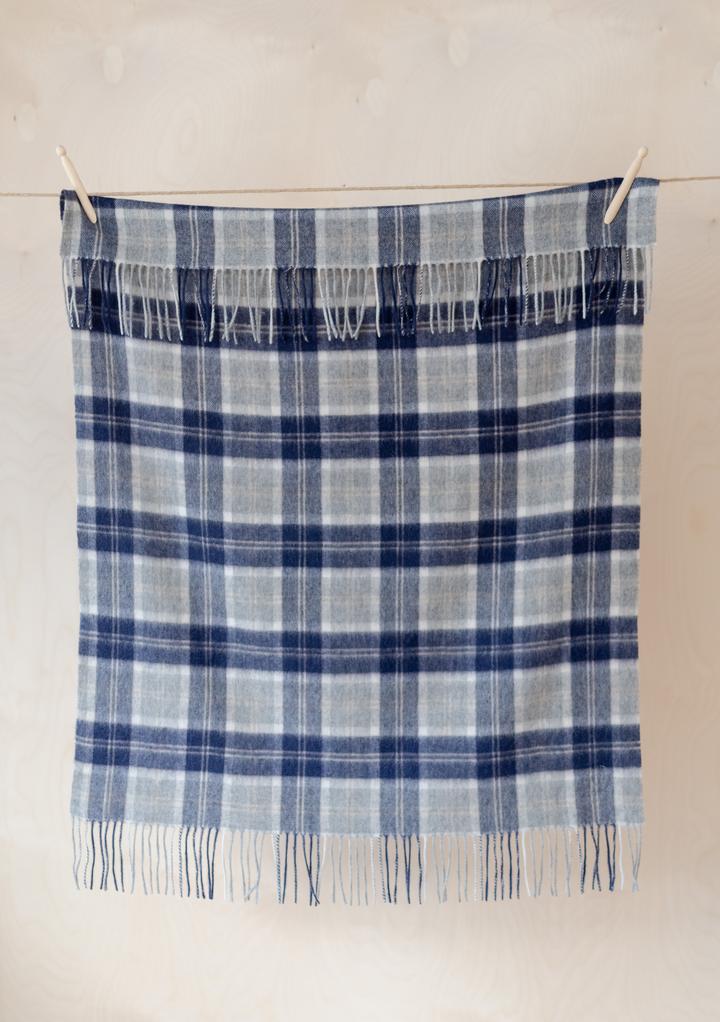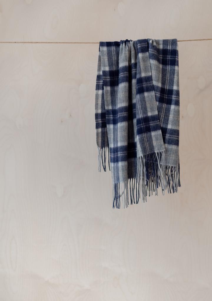 Sprei Paddock Check Blue Jay – Pure New Wool – 140x240 cm - Tweedmill