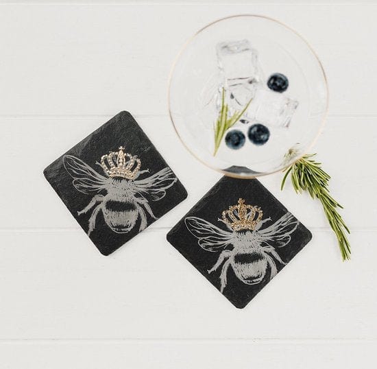 Nos sous-verres Bij avec couronne dorée - Gravé - Ardoise - Just Slate Company Scotland sont parfaits pour tous ceux qui apprécient l'artisanat et le style.Que ce soit pour une soirée conviviale entre amis ou un dîner intime avec des proches, ces sous-verres ajoutent une touche d'ambiance écossaise à chaque occasion.
