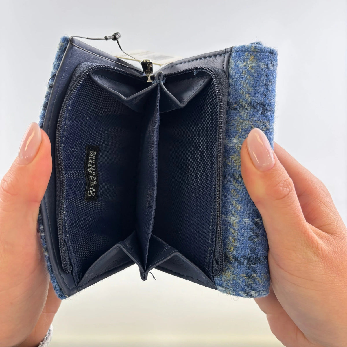 Dames Portemonnee Jura Blauw met Turquoise ruit - Harris Tweed - Glen Appin of Scotland