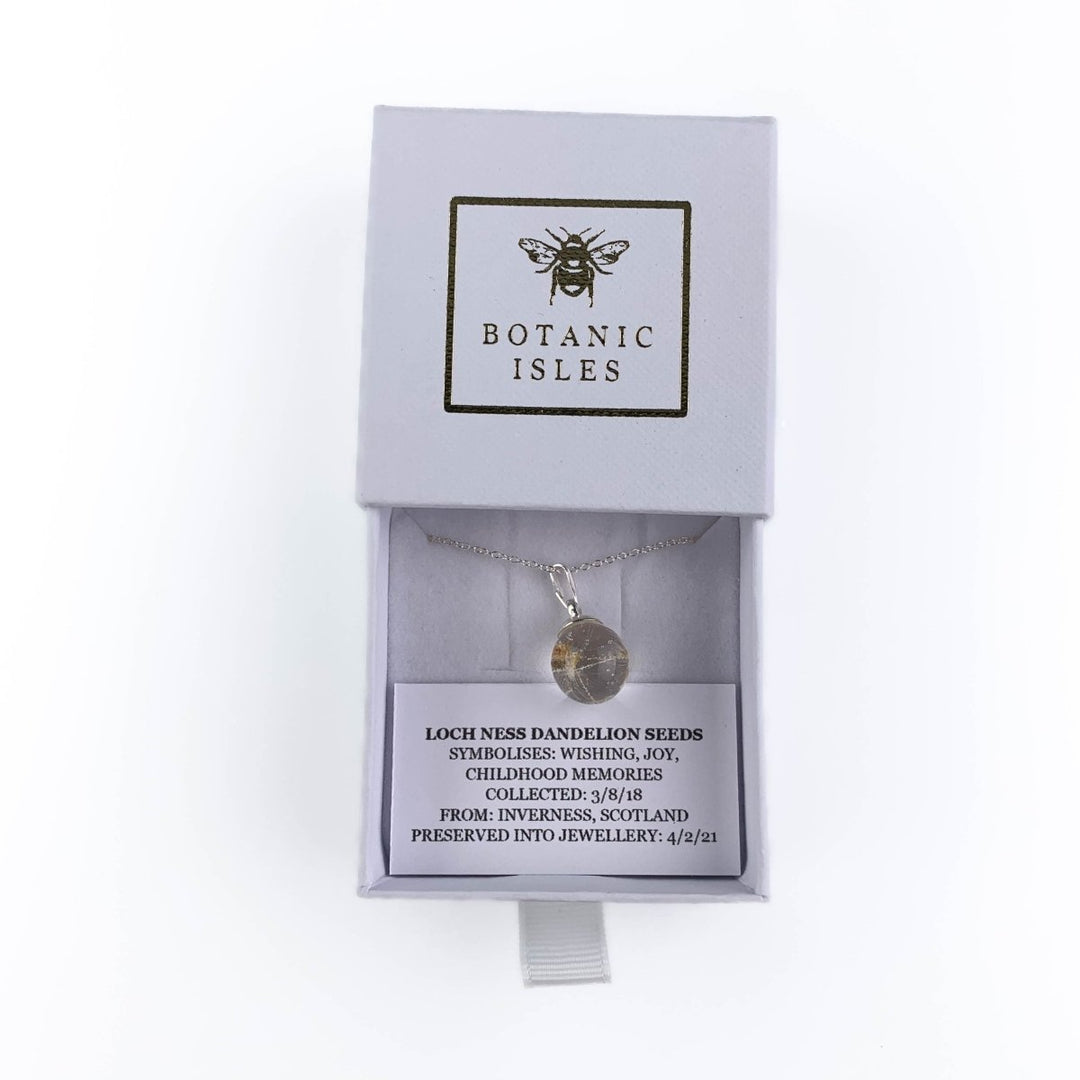 • Inhoud hanger: Zorgvuldig geplukte Loch Ness paardebloem zaden